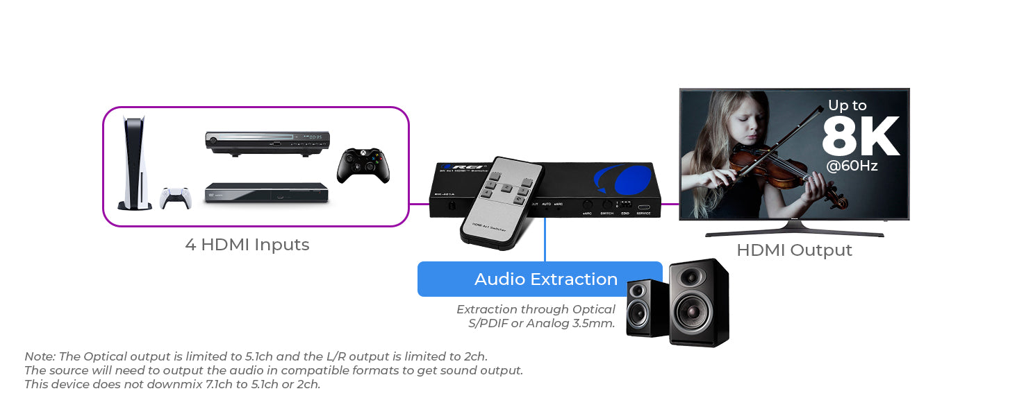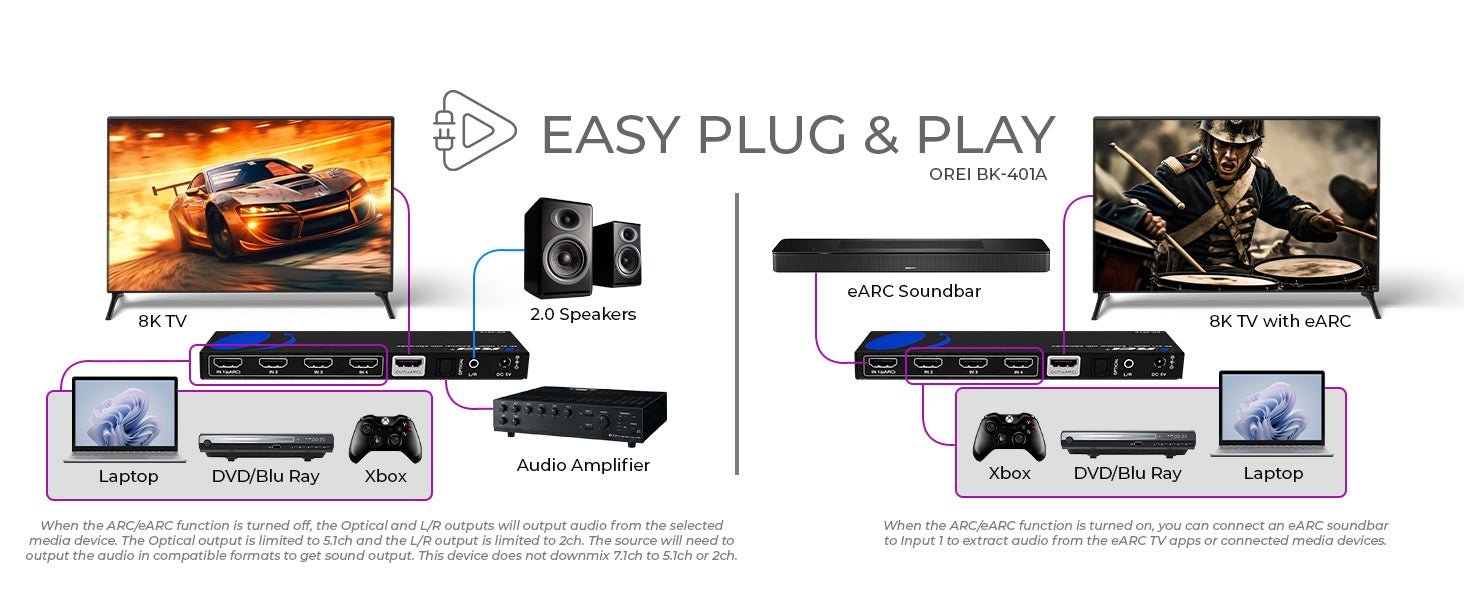 Connect Multiple HDMI Sources with ARC/eARC Audio Support