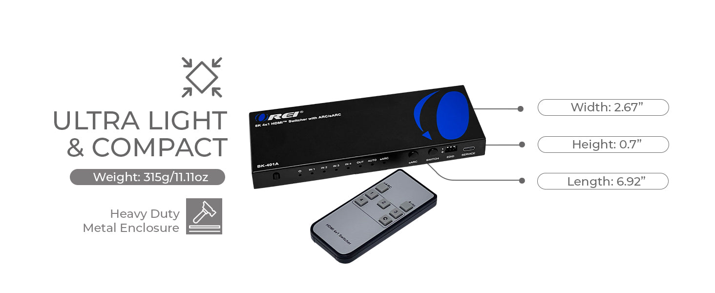 OREI BK-401ARC: 4x1 HDMI Switch with ARC/eARC Audio Extraction