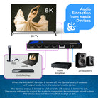 Supporting resolutions up to 8K@60Hz (4:2:0) and 4K@120Hz (4:4:4), this 8k switcher delivers breathtaking image clarity with vibrant colors and sharp detail. Backed by 48Gbps FRL and 18Gbps TMDS bandwidths, it ensures smooth, uncompressed video streaming for the most demanding applications.