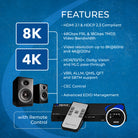 Experience superior picture quality with HDR10+, Dolby Vision, and HLG pass-through. The switch supports VRR, ALLM, QMS, QFT, and SBTM, optimizing your gaming and video playback with reduced latency and tear-free visuals. This switch hdmi 2.1 device also features CEC control for managing your soundbar and source devices using your TV remote, enhancing user convenience.