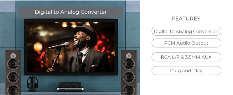 The DA21 Digital to Analog Audio Converter is the perfect solution for integrating digital audio sources with analog systems. It converts Coaxial or Toslink digital signals into analog stereo output, making it ideal for TVs, Blu-ray players, and streaming devices that lack analog ports. A must-have digital to analog audio converter for TV and home entertainment setups.