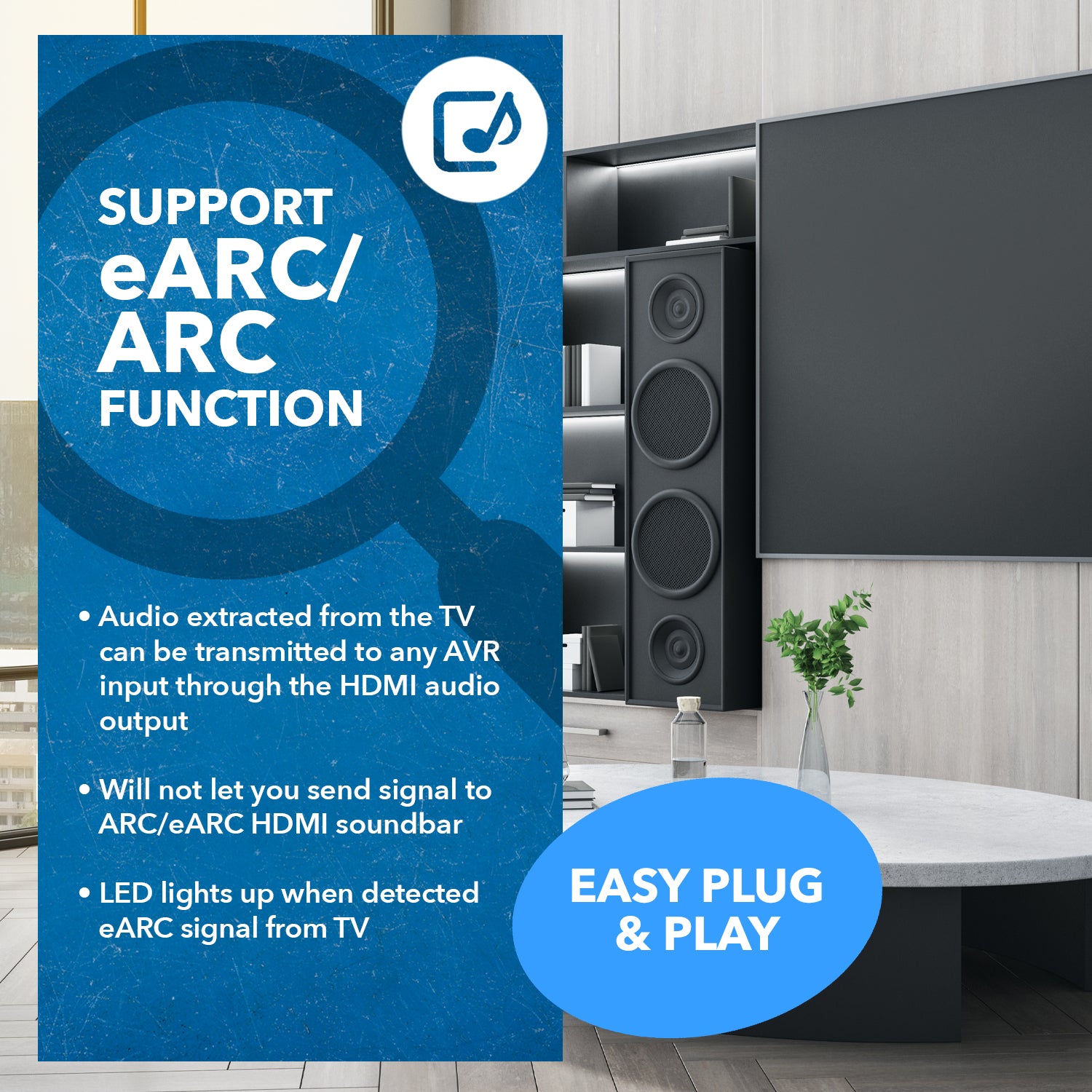 ARC/eARC Audio Extraction – Routes TV audio from ARC-enabled TVs to amplifiers or sound systems