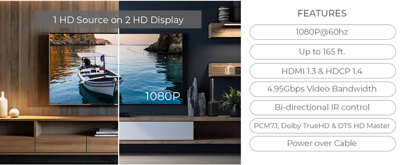 - Signal Extension up to 165 ft (50 m) – Uses a single CAT6/7 cable for long-distance transmission.