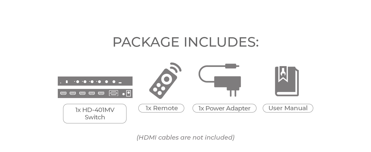 - 1x HDMI 4x1 Quad Multi-Viewer