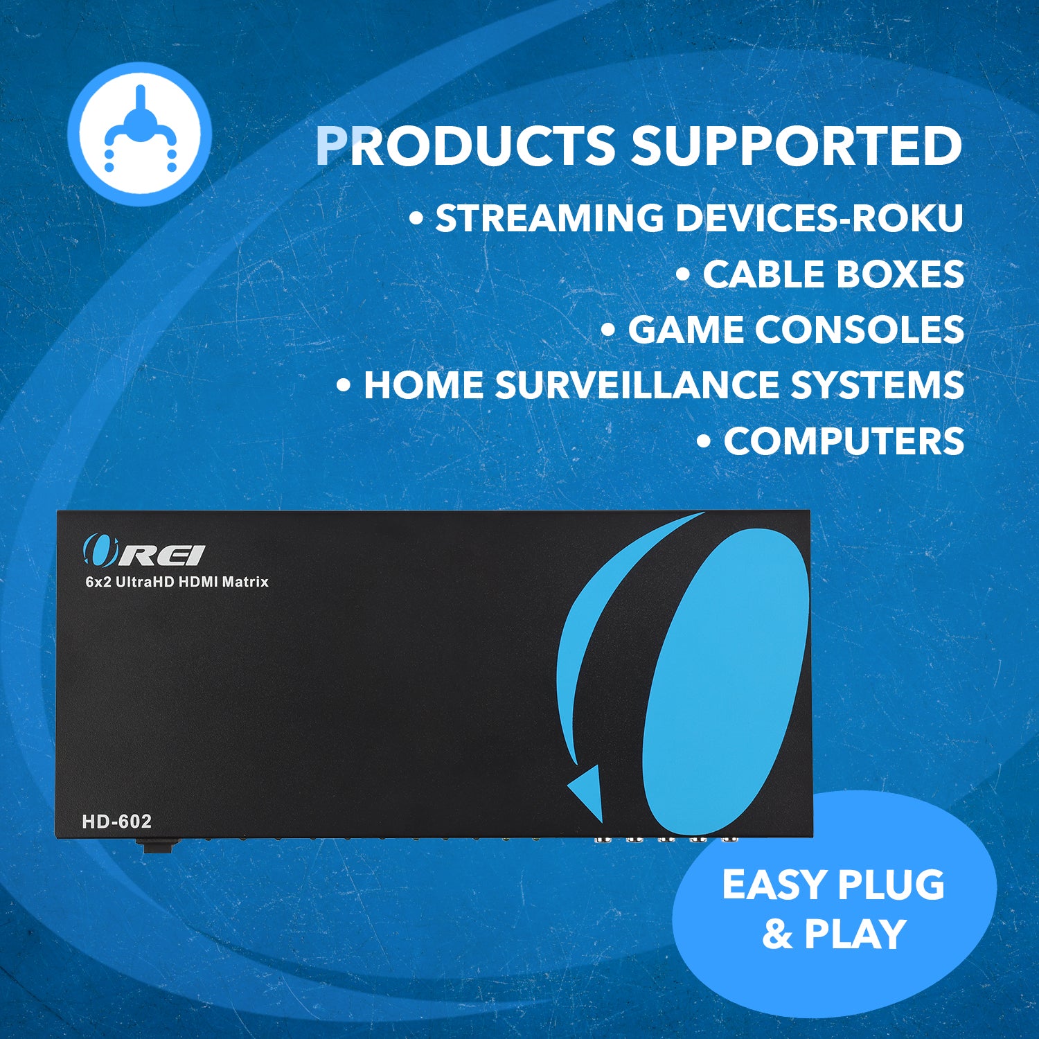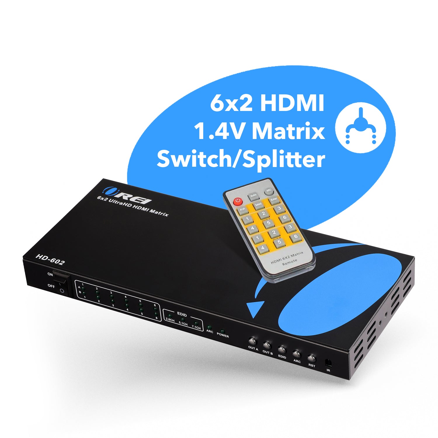 OREI HD-602: 6-In-2-Out HDMI Matrix Switch with ARC