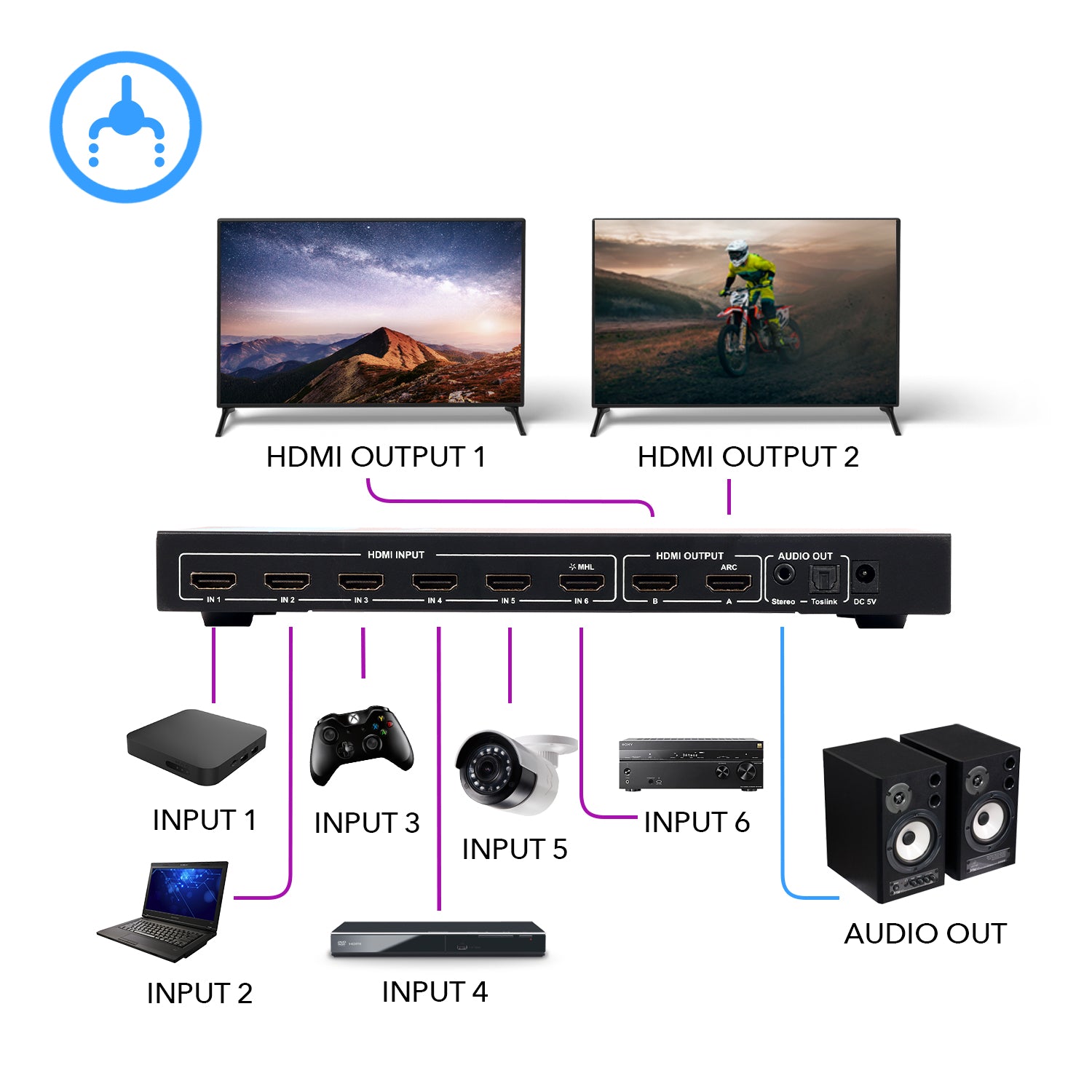Ultra HD 6x2 HDMI Matrix Switch with ARC Support (HD-602)