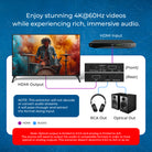 With 18Gbps video bandwidth and 10-bit HDR pass-through, this compact hdmi extractor delivers vibrant color, fine detail, and smooth motion. It's ideal for setups where both display performance and audio flexibility matter—such as gaming consoles, Blu-ray players, or media centers.