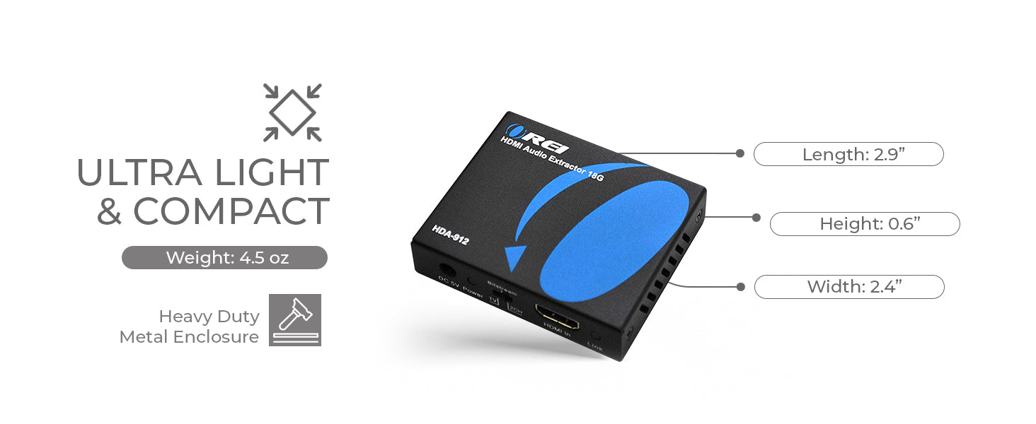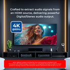 HDA-912 is a compact HDMI audio extractor designed to separate audio signals from any HDMI-compliant source—such as set-top boxes, media players, or streaming devices—and output them through both Optical and 3.5mm stereo ports.