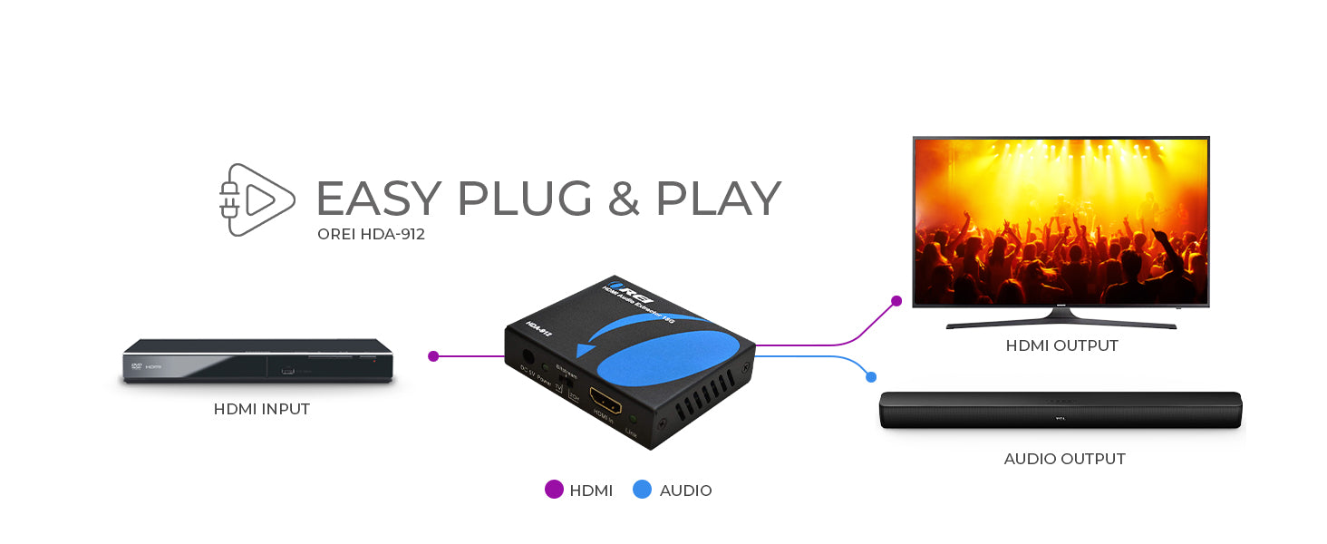 With high-bit-rate HDMI audio pass-through and sampling rates up to 192kHz, the HDA-912 delivers outstanding audio quality. Its durable, compact form factor makes it ideal for both personal and commercial AV setups.