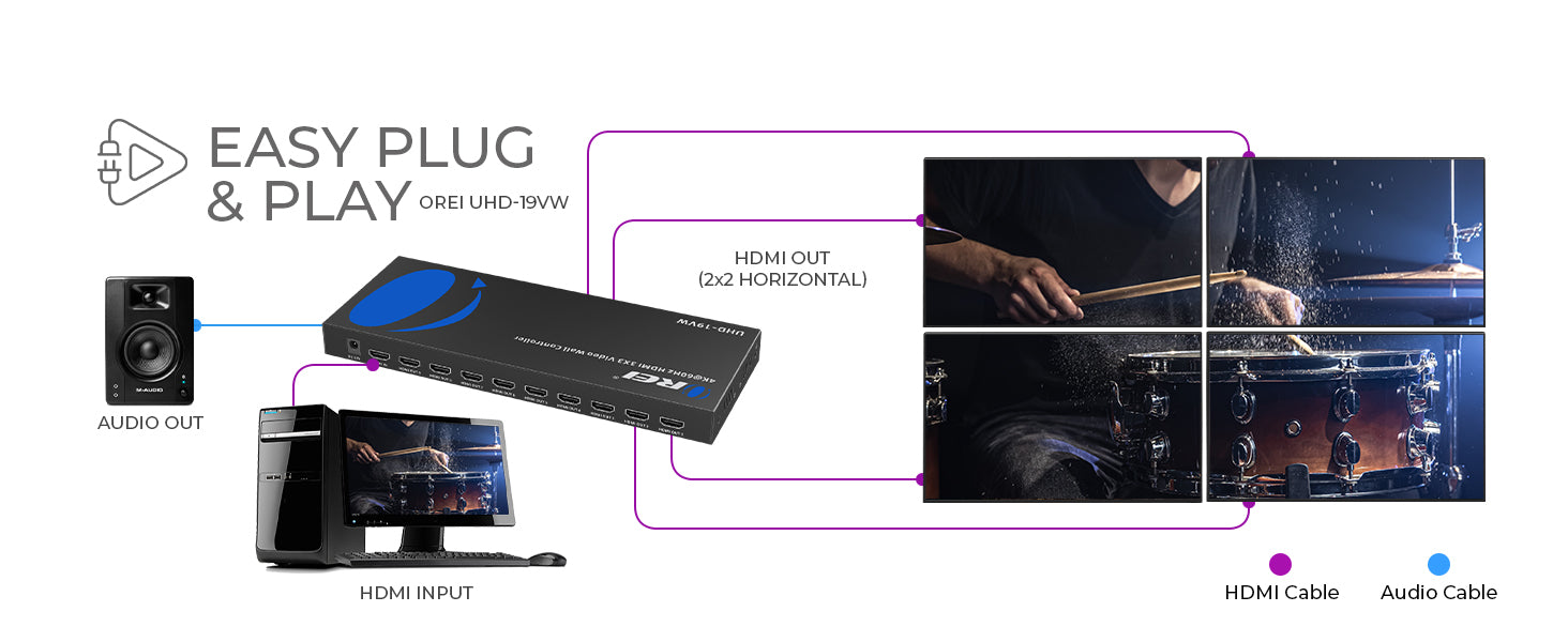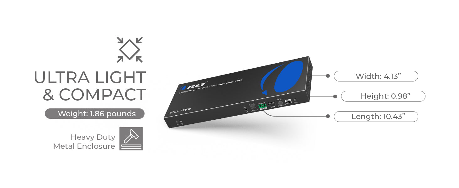 The UHD-19VW is a professional-grade 1-in-9-out HDMI video wall controller designed to deliver flexible multi-screen display configurations for a wide range of commercial and residential applications.