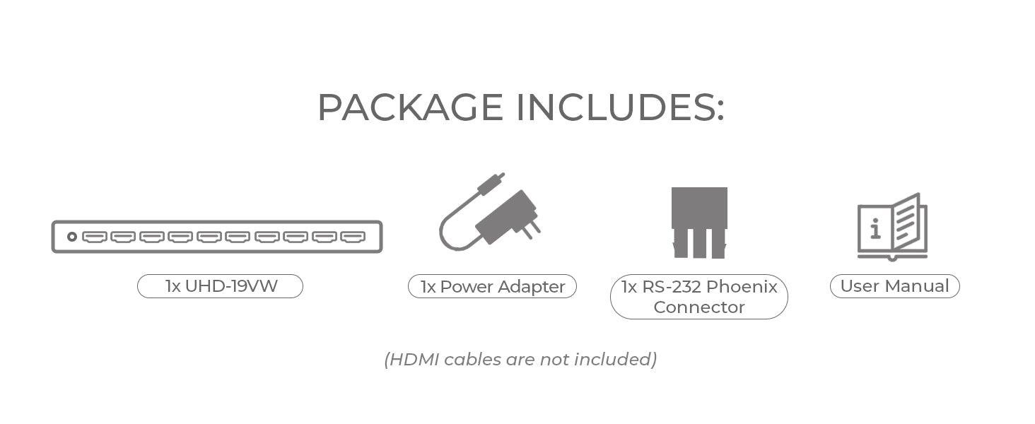 With support for firmware upgrades via USB and true plug-and-play operation, the UHD-19VW provides a reliable and highly adaptable solution for video wall deployments in security systems, command centers, public displays, and immersive home theater environments.