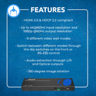 Audio Extraction – Supports analog stereo audio output via 3.5mm jack and digital audio output via S/PDIF.