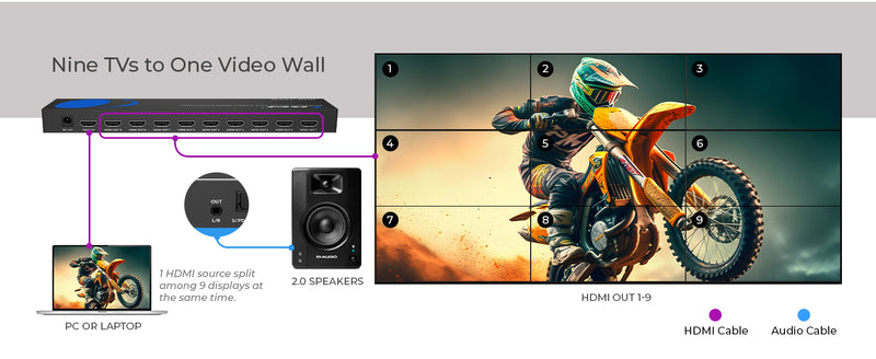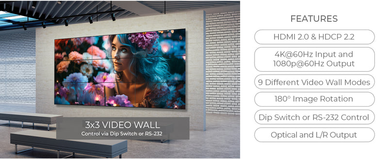 4K 1-In-9-Out HDMI™ Video Wall Controller (Audio Extract)-UHD-19VW