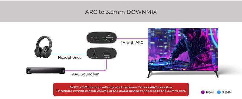 - CEC Function - Allows TV remote to control the ARC Soundbar/AVR.