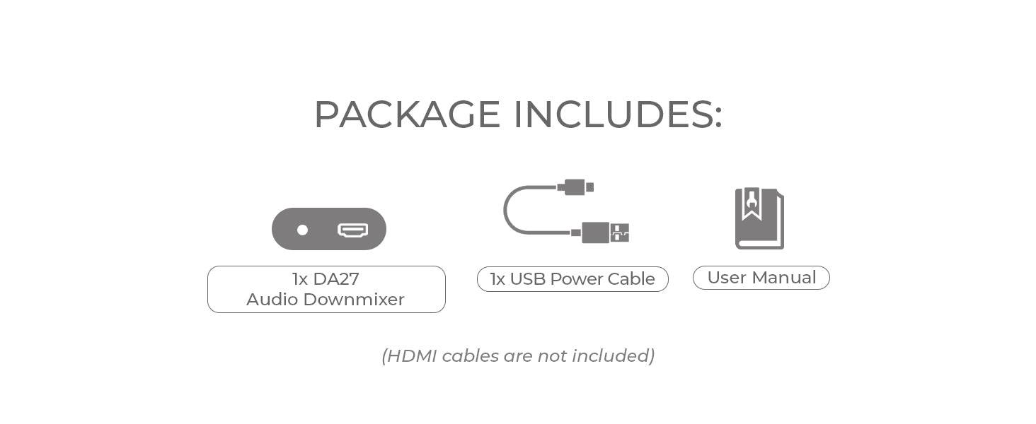 DA27 is a compact and high-performance audio down-mixer designed to extract and convert audio from ARC-enabled TVs. It outputs 2-channel analog stereo audio via 3.5mm output and digital audio through HDMI™ ARC, making it ideal for connecting ARC soundbars or AVRs along with analog audio devices like headphones. Supporting Dolby 5.1 and DTS 5.1 audio down-mixing, it ensures rich, balanced stereo sound without loss of clarity.