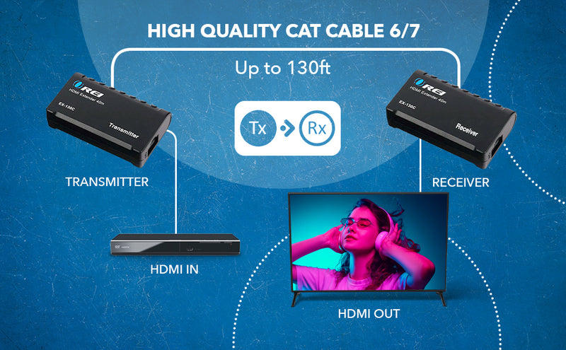 The OREI EX-130C HDMI Extender delivers crisp 1080p@60Hz video over distances up to 130 feet (40 meters) using a single CAT6/7 cable. Whether you're setting up a home theater, conference room, or digital signage system, this extender ensures smooth, uninterrupted signal quality without the need for long HDMI cables.
