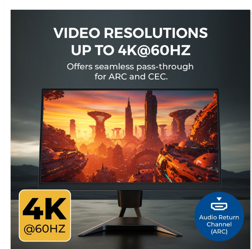 - CEC & ARC Functionality – Supports Audio Return Channel and device control via a single HDMI connection.