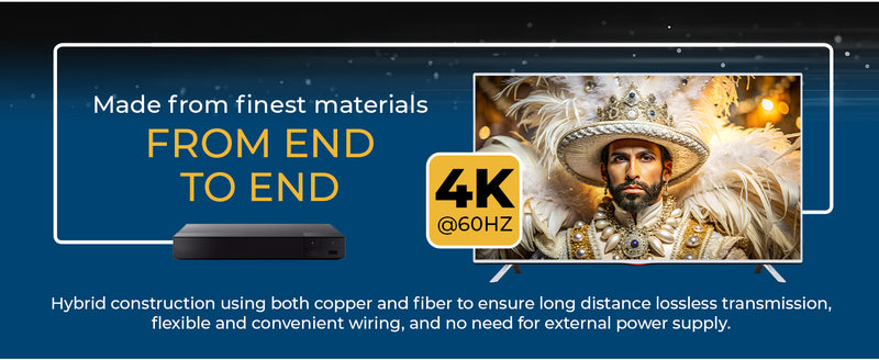With a hybrid design combining copper and optical fiber, the cable eliminates electromagnetic interference, delivering stable, uncompressed video and audio signals up to 200 feet (~61 meters).