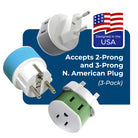Designed for safe, grounded use, these adapters ensure reliable power connections for your devices, including cell phones, laptops, and more. The OREI adapter set is compact and lightweight, making it easy to pack and carry, making it a perfect travel companion.
