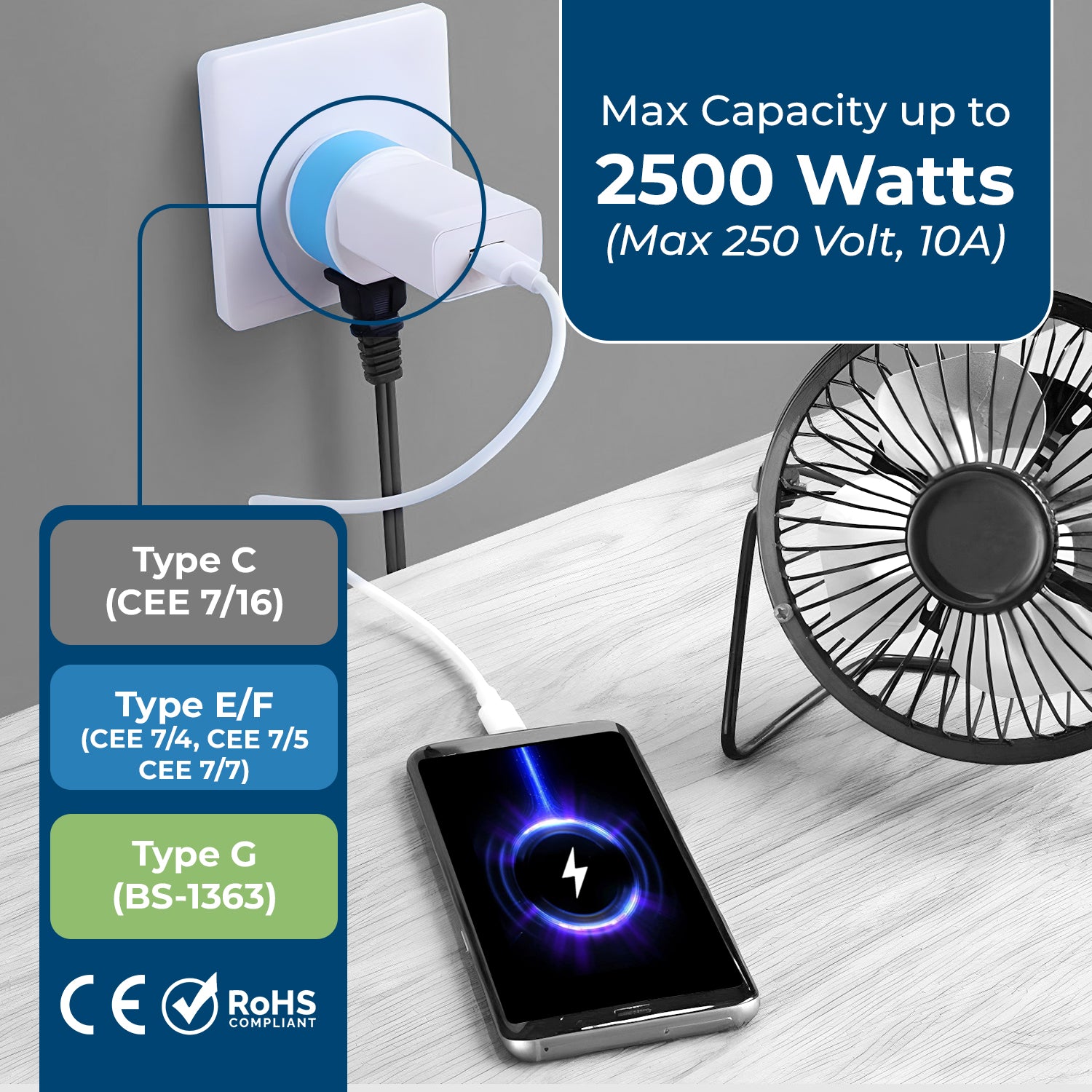 - Type G Adapter: Suitable for the UK, Ireland, and other countries using British plug type.