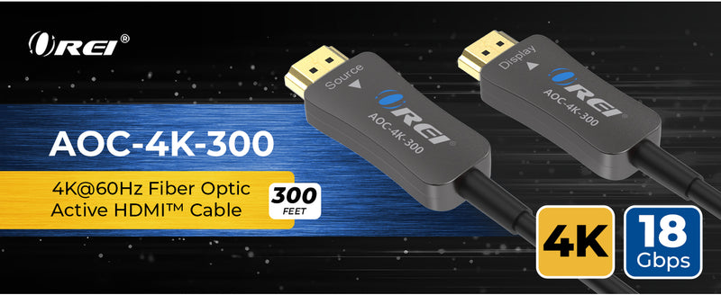 OREI 300ft Fiber Optic HDMI 2.0 Cable 4K 60Hz HDR High Speed (AOC-4K-300)