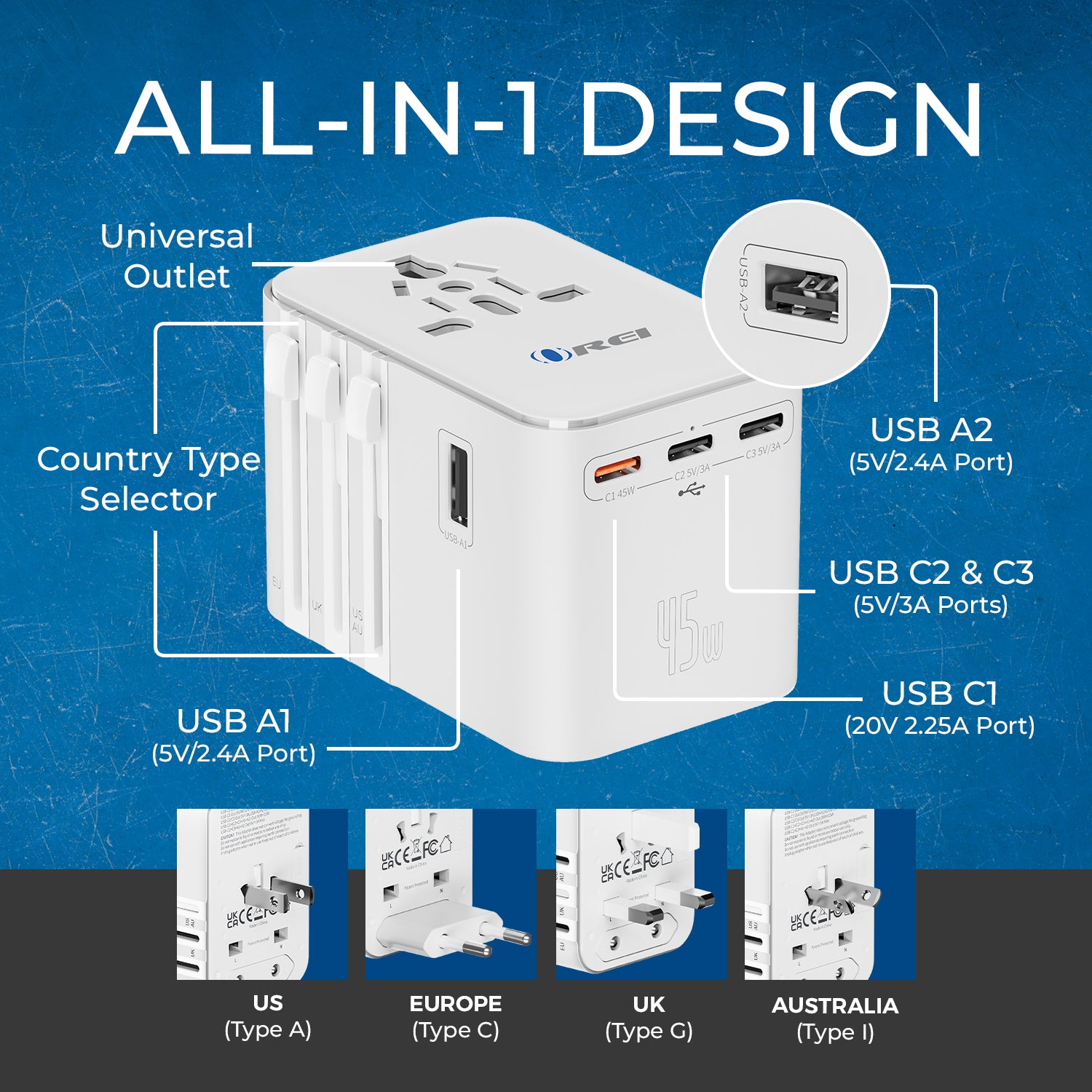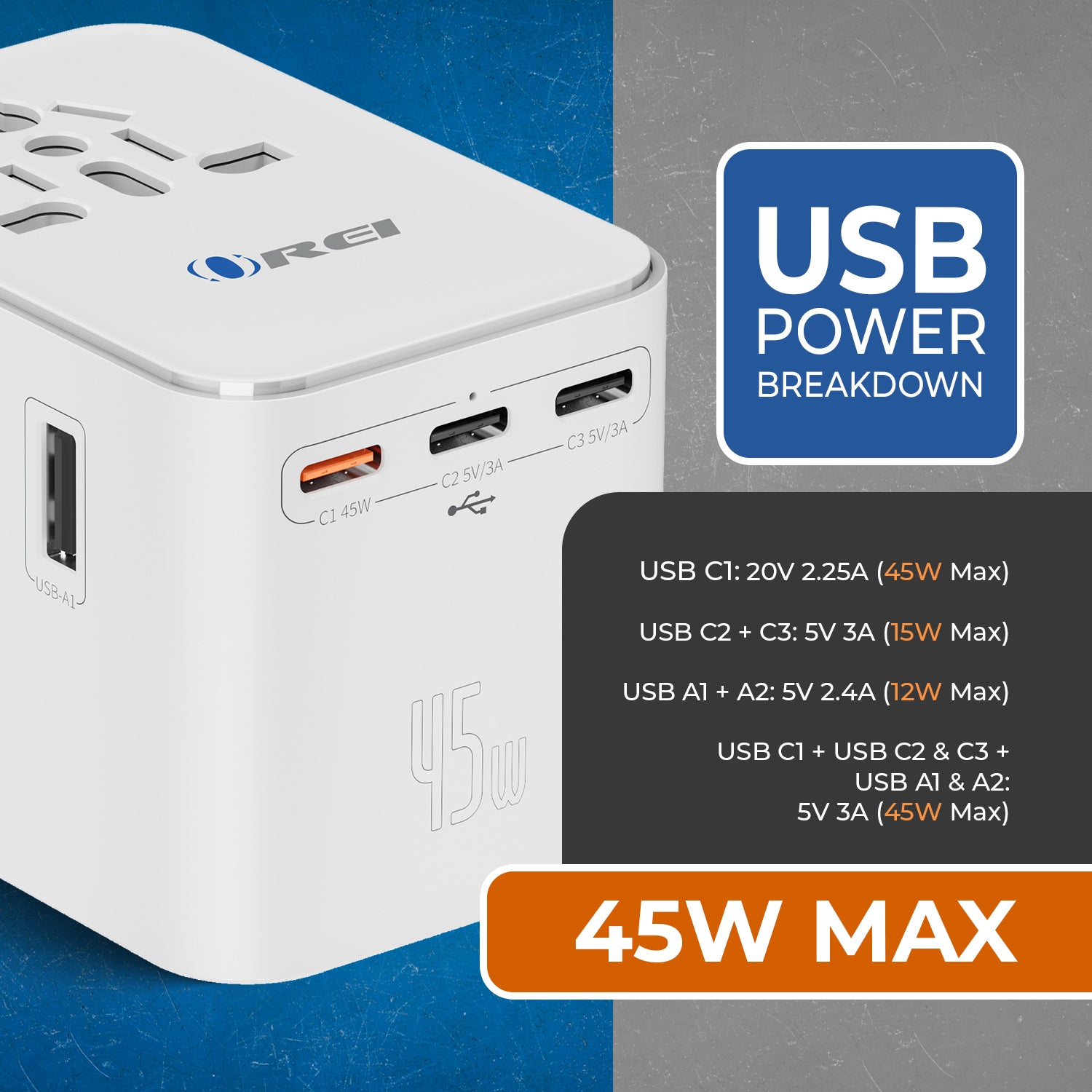 OREI 45W Universal Travel Adapter – Powerful 6-in-1 Fast Charging for Worldwide Travel