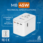 OREI 45W Universal Travel Adapter | 6-in-1 Fast Charging with USB-C & USB-A (M8-45W)