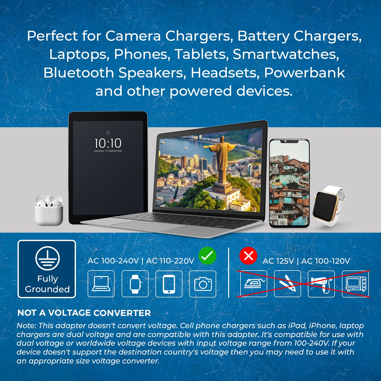 - Works with Cell Phones, Camera, Laptop, Camera Chargers and More
