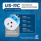 The US-11C is designed in the US and it’s our top choice for travel adapter to use in Type N outlets. It's compatible for use with dual voltage or worldwide voltage devices .It features one socket to connect a N. American 2-prong or a 3-prong power cord to charge your devices.