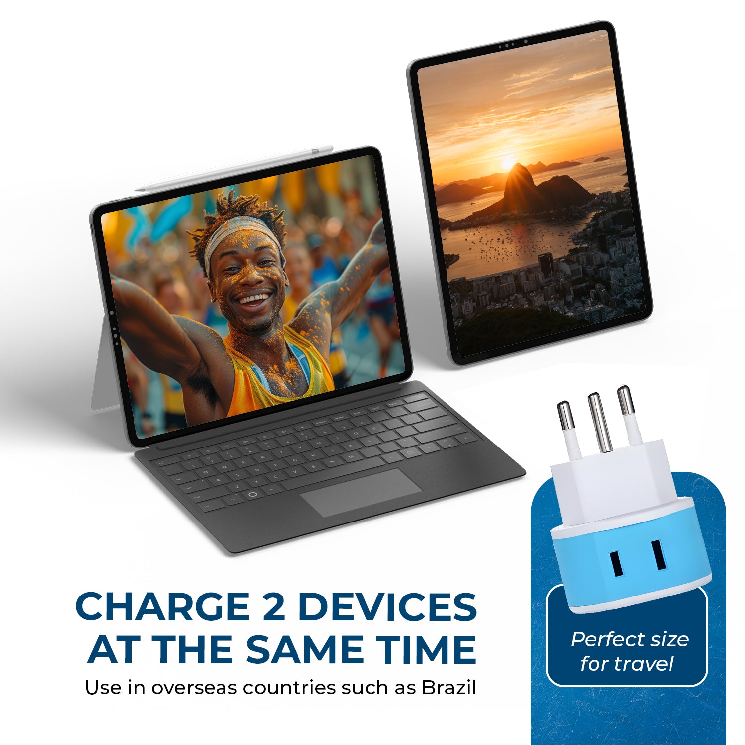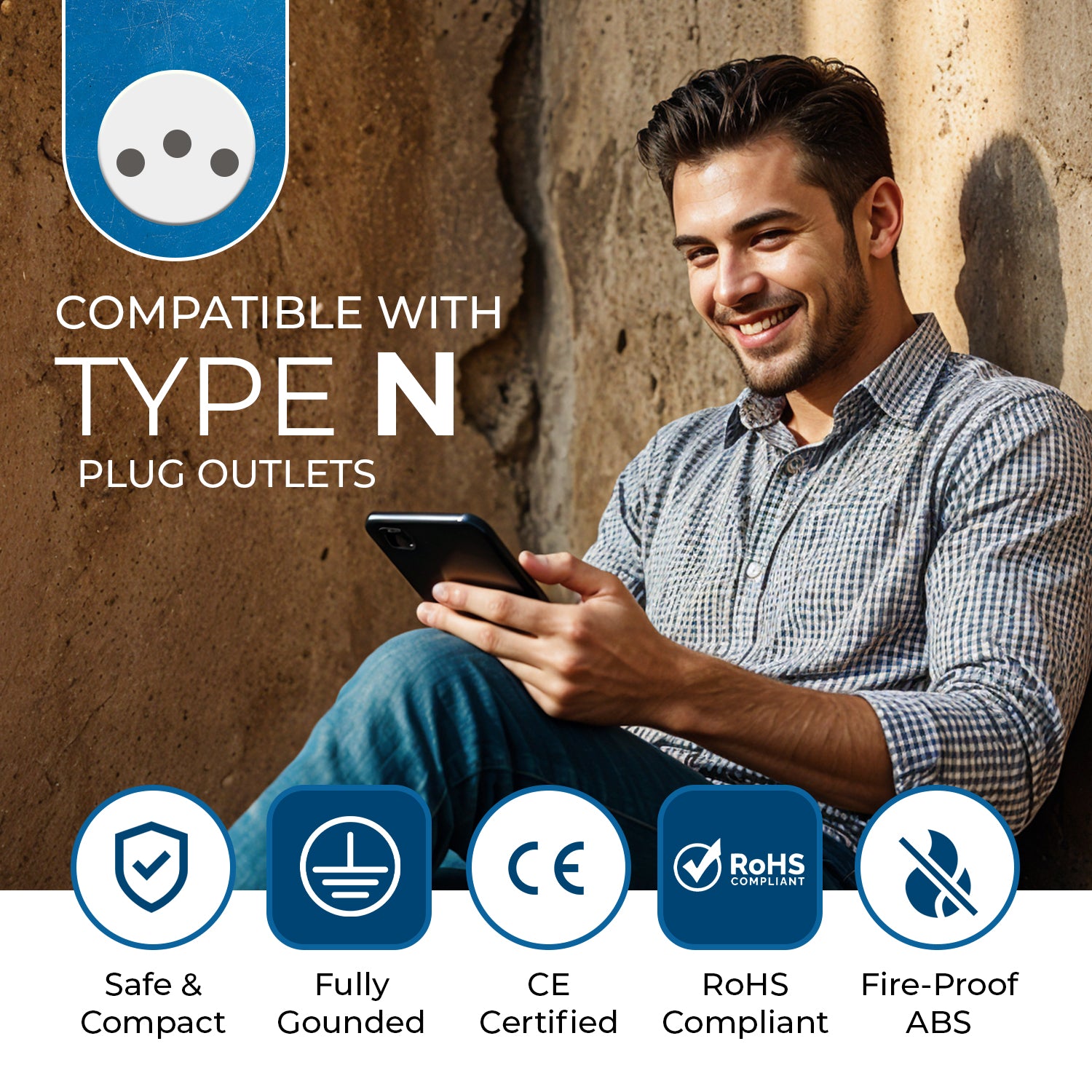 Brazil Travel Adapter - 2 in 1 - Type N - Compact Design (US-11C)