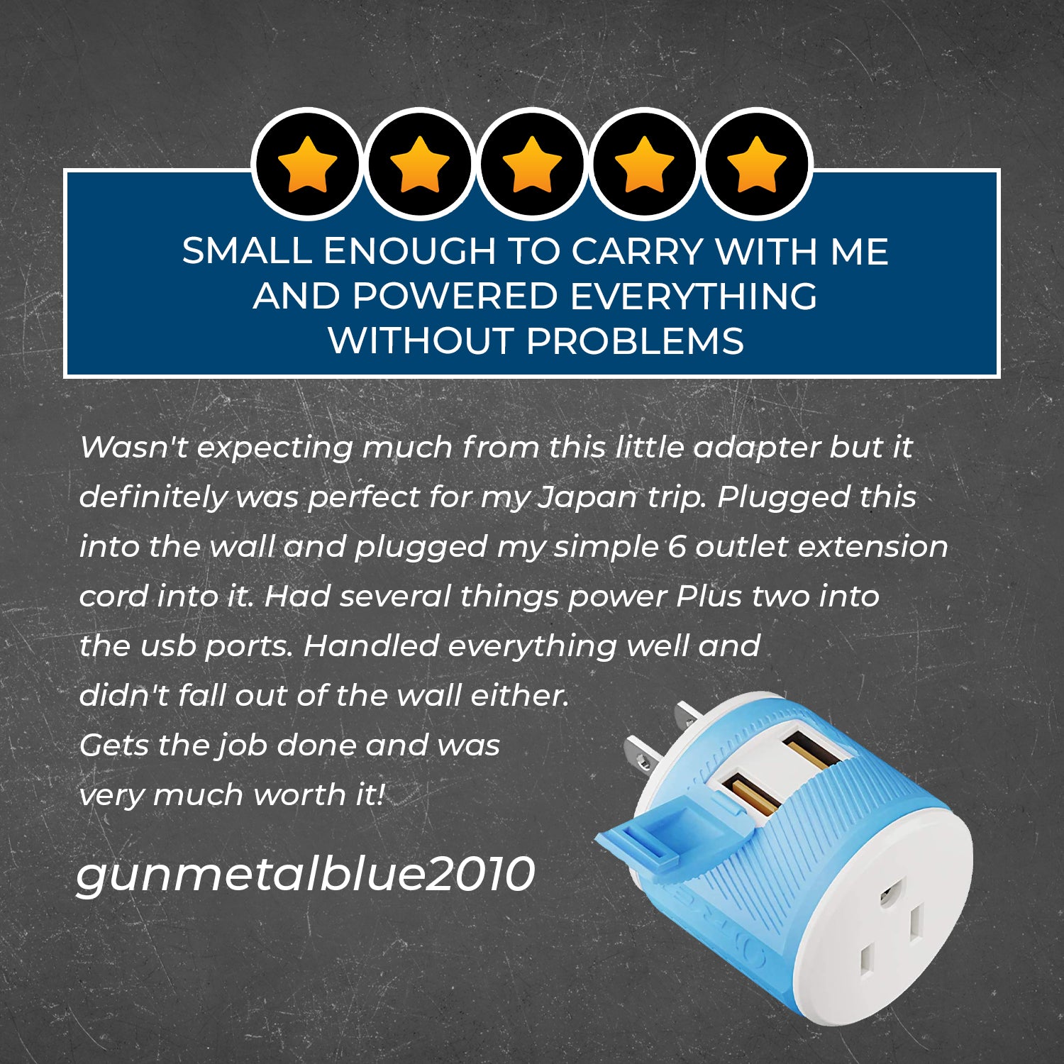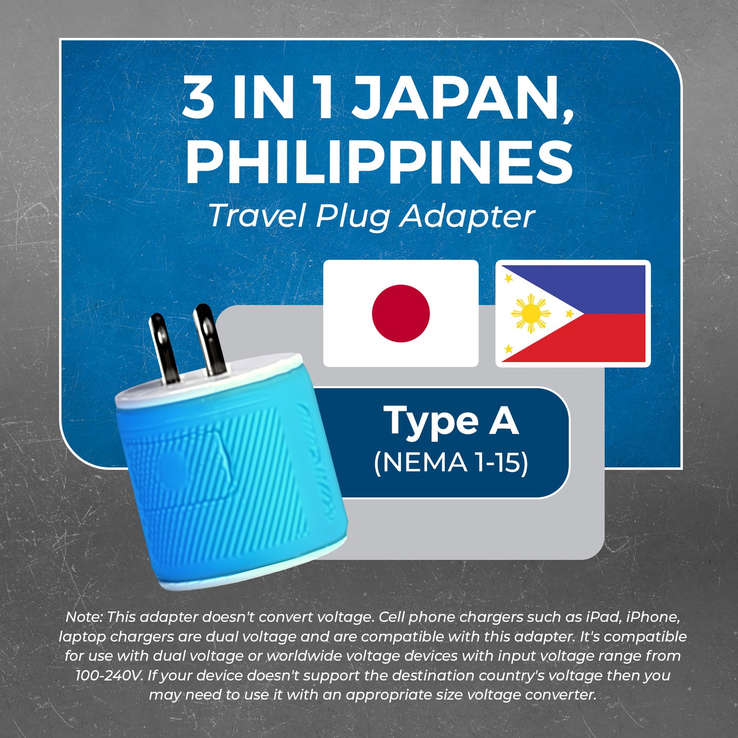 Japan, Philippines Travel Adapter - 3 in 1 - 2 USB - Type A - Compact Design (U2U-6)