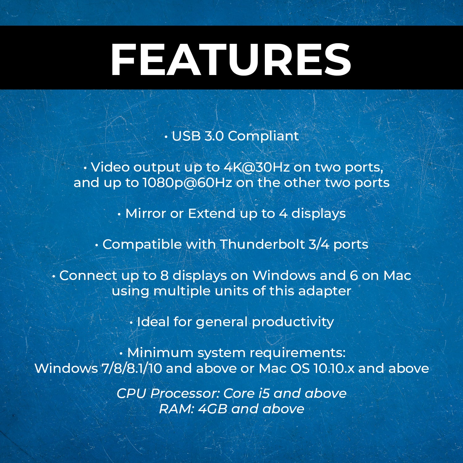 - USB 3.0 Compliant – Ensures stable and high-speed data transfer for smooth display output.