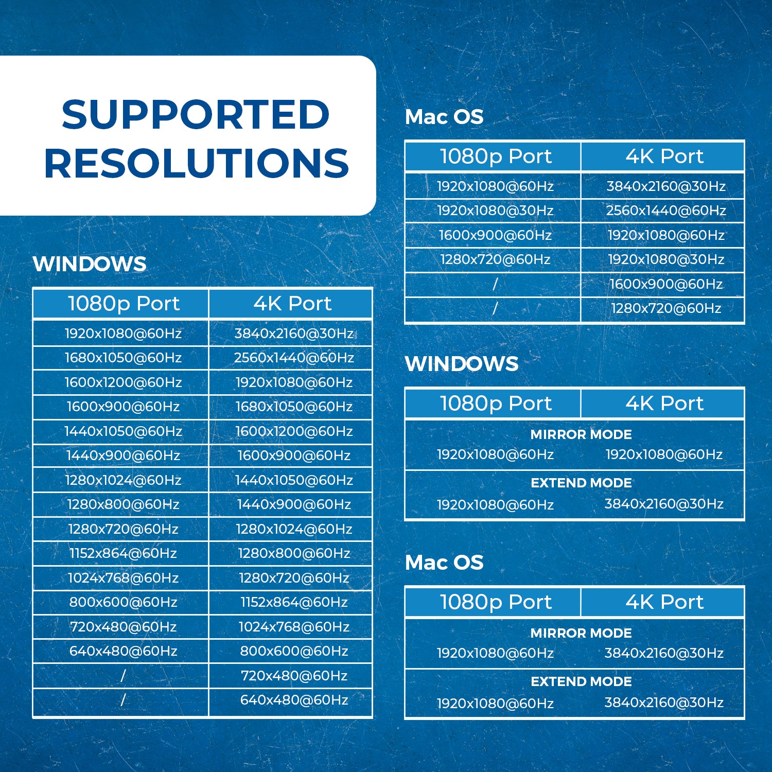 - Supports up to Four Displays – Two ports support resolutions up to 4K@30Hz, and two ports support up to 1080p@60Hz.