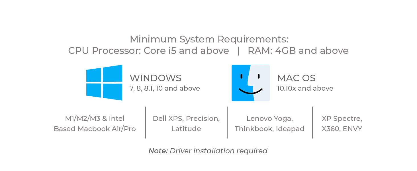 - Driver Installation Required – Software driver must be installed before use.