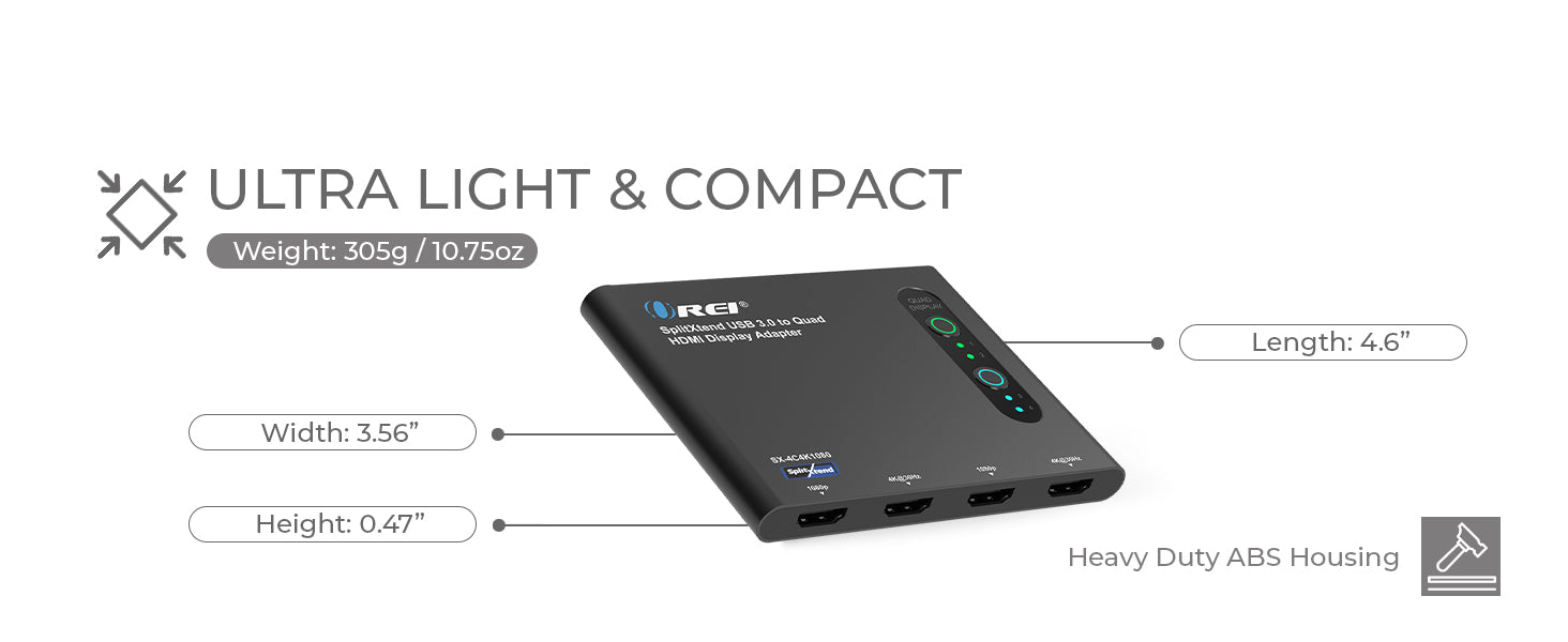 OREI SX-4C4K1080: SPLITXTEND USB 3.0 TO QUAD HDMI DISPLAY ADAPTER