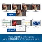 - Supports up to Four Displays – Two ports support resolutions up to 4K@30Hz, and two ports support up to 1080p@60Hz.