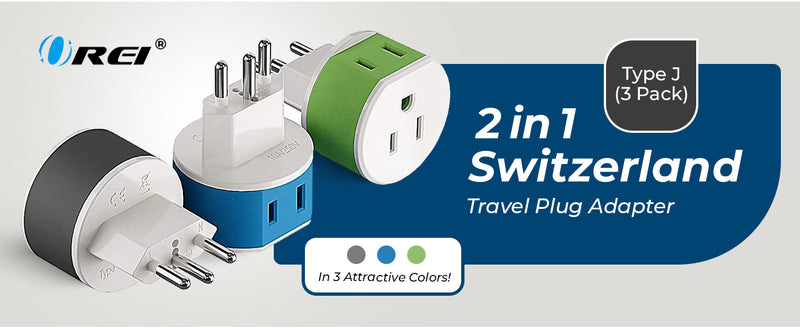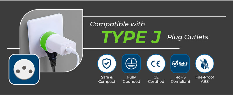 Switzerland Travel Adapter - 2 in 1 - Type J - Compact Design (US-11A)