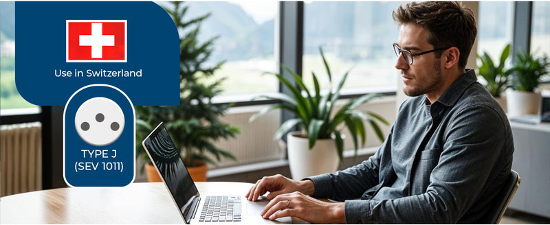 The US-11A is designed in the US and it’s our top choice for travel adapter to use in Type J outlets. It's compatible for use with dual voltage or worldwide voltage devices .It features one socket to connect a N. American 2-prong or a 3-prong power cord to charge your devices.