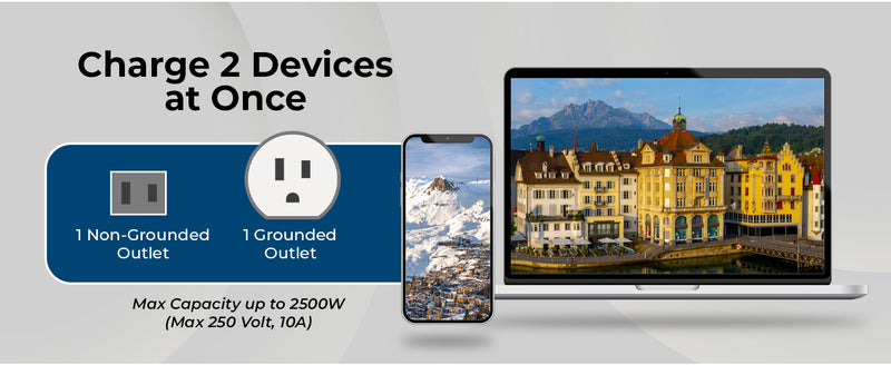 The US-11A travel adapter offers an easy and dependable power connection for your travels in Switzerland. Featuring dual grounded outlets, it supports up to 2 devices like cell phones, laptops, and cameras, helping you stay connected wherever you are. Compact and lightweight, it fits comfortably in any bag, making it ideal for both casual and business travelers. With 10A and 250V support and a 3-prong grounded design that’s CE Certified and RoHS Compliant, this adapter ensures safe and efficient power for dual voltage products without the need for a voltage converter.