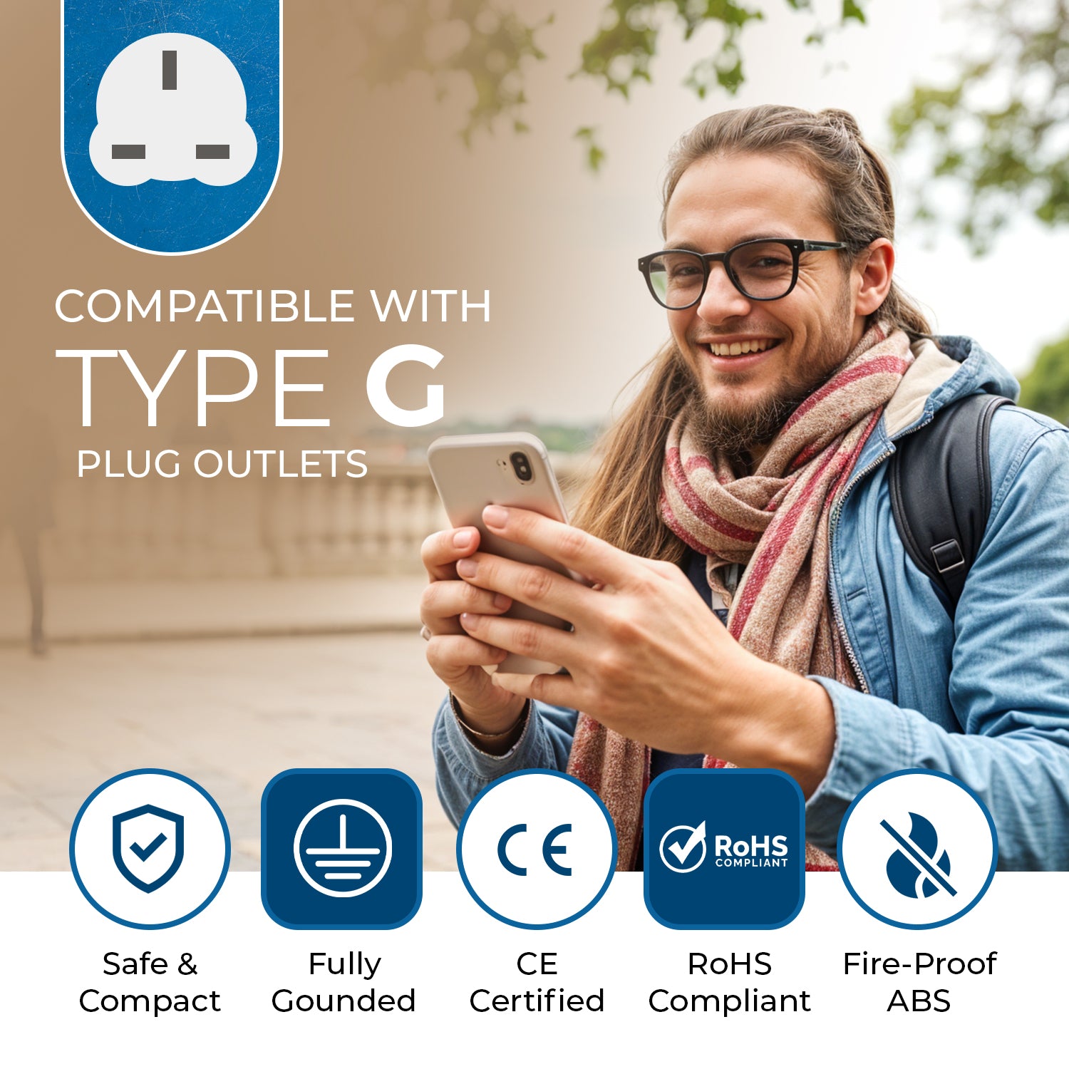 UK, Dubai Travel Adapter - 2 in 1 - Type G - Compact Design (US-7)