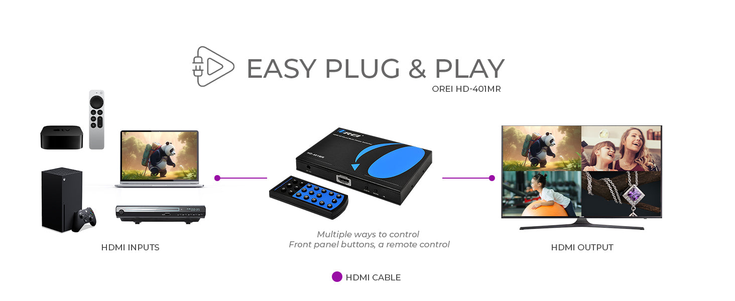 - Real-Time Multi-Source Viewing – View all four HDMI sources simultaneously on one screen