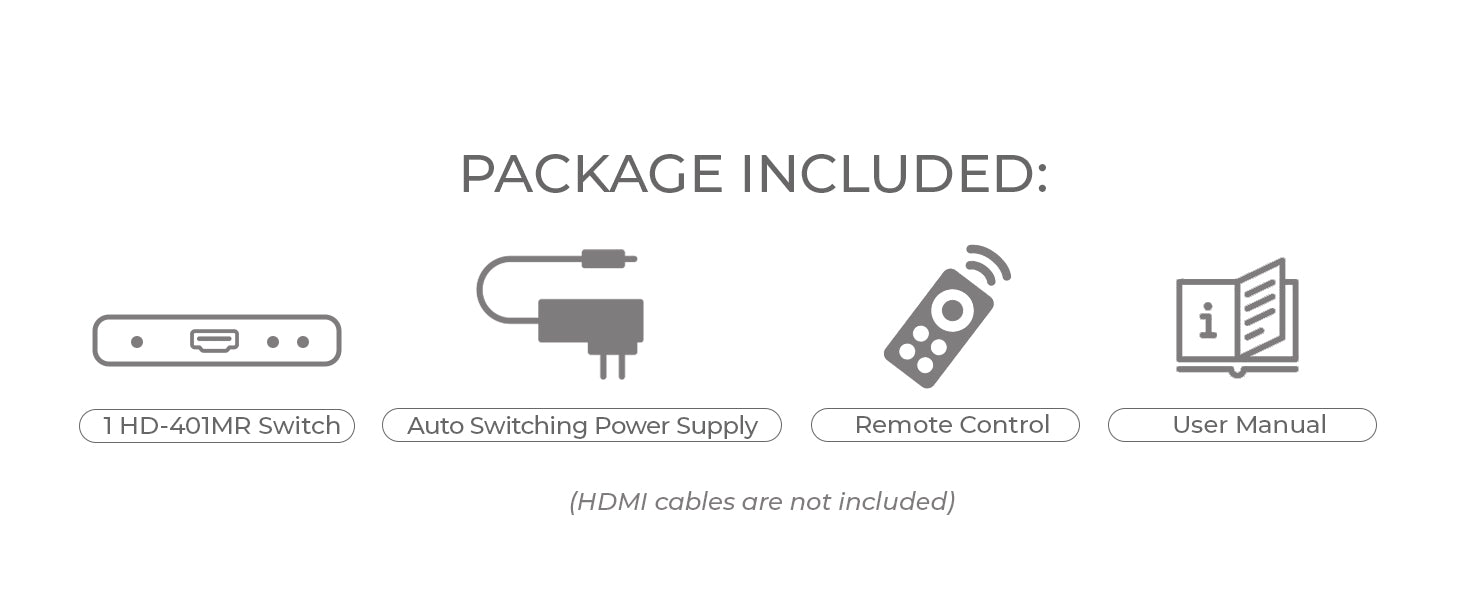 - 4 HDMI Inputs, 1 HDMI Output – Connect up to four source devices to a single display