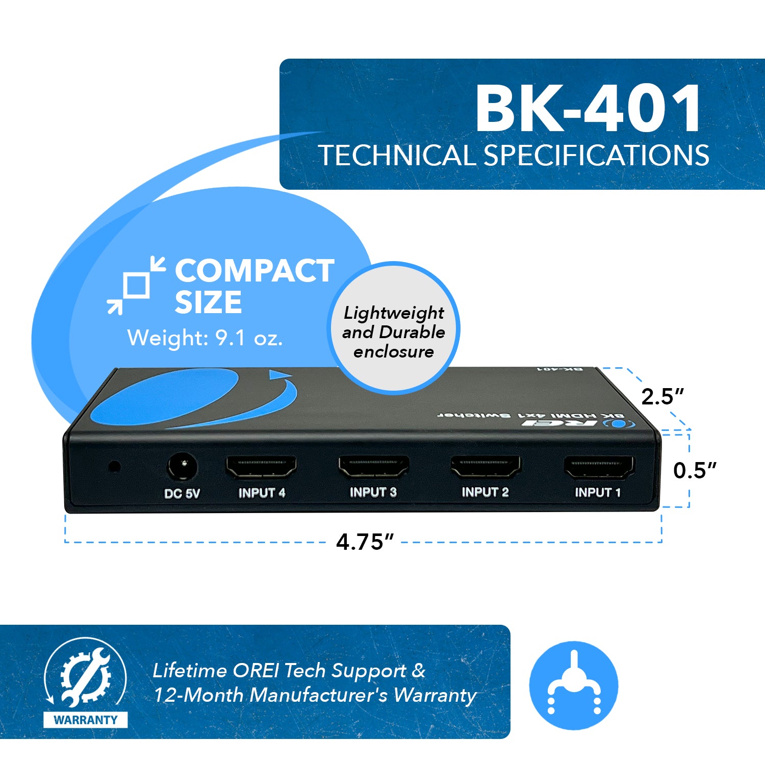 OREI 8K 4-port HDMI™ Switch-BK-401