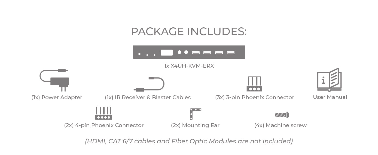 The X4UH-KVM-ERX is a versatile HDMI extender and AV-over-IP solution designed for high-performance, long-distance signal transmission. Fully compliant with HDCP 2.2 and HDMI 2.0b, it supports 4K@60Hz (4:4:4) video with up to 18Gbps bandwidth, delivering uncompromised ultra-high-definition quality.