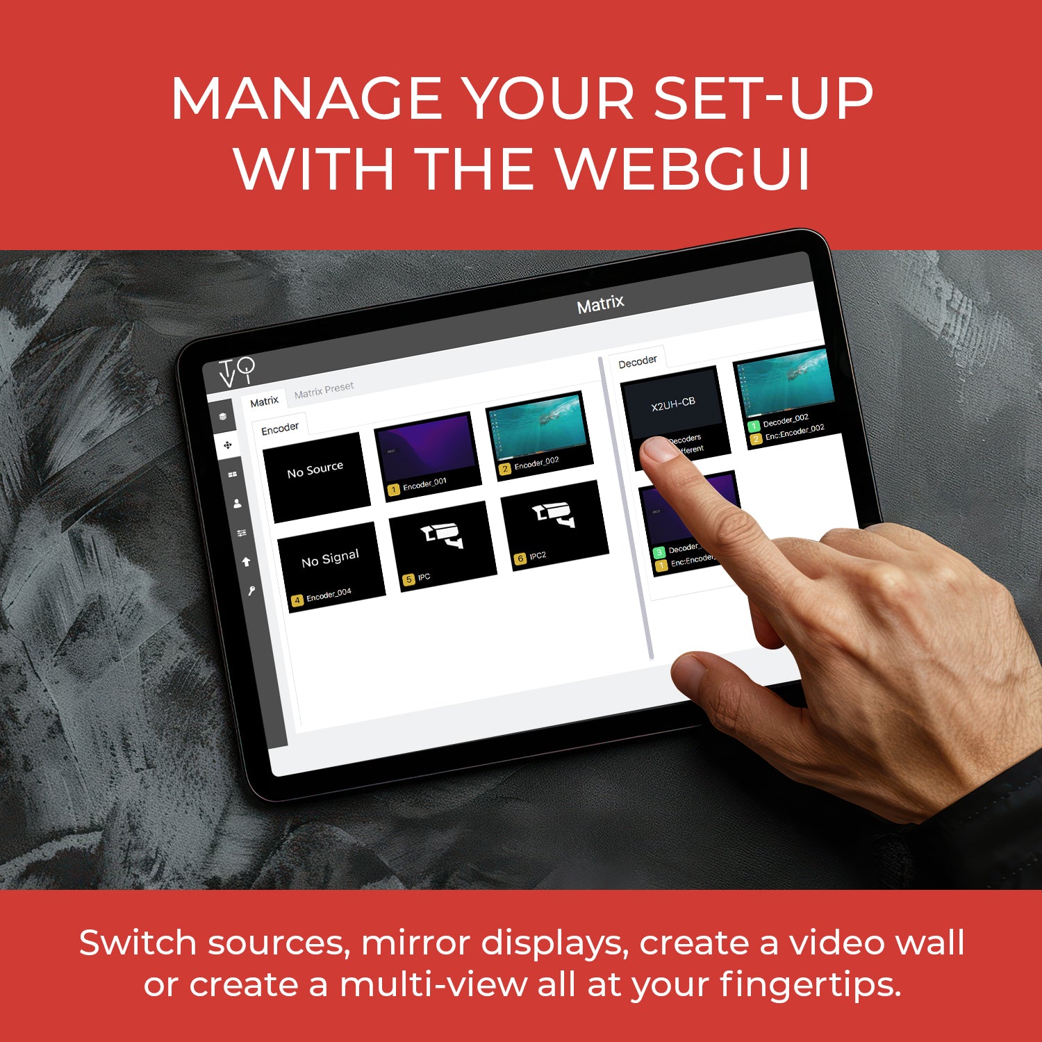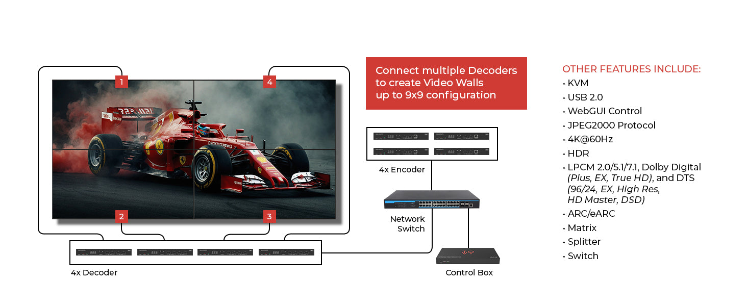 Advanced Signal Routing – Supports unicast, multicast, point-to-point, matrix switching, and video wall functionality (up to 9x9).