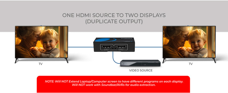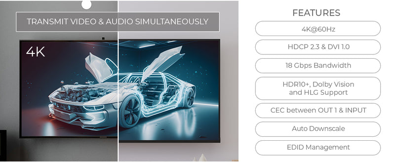 - Auto Downscale Function – Automatically outputs 1080p to one display while maintaining 4K on another.