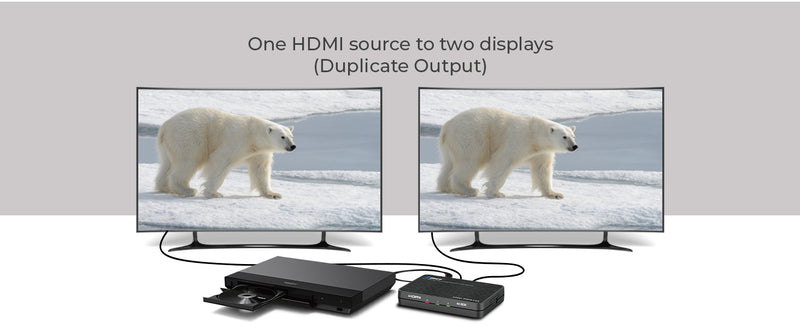 - 1 in 2 out HDMI splitter With Auto Downscale