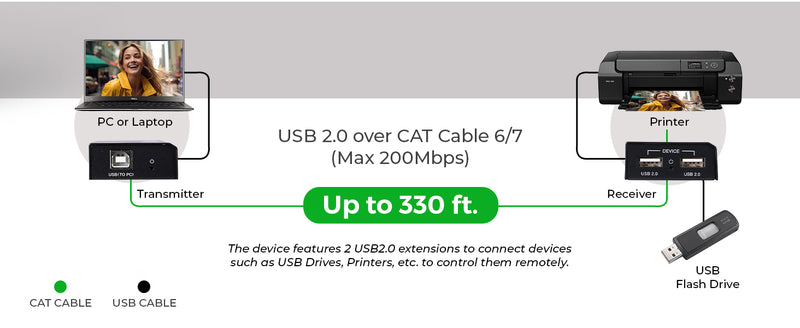 USB2.0 Extender (USB-B to USB-A) - 330ft (cat6)-USB-EXB330-K