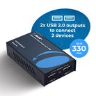 Dual USB 2.0 Outputs – Connect and operate up to two USB devices at the receiver simultaneously.