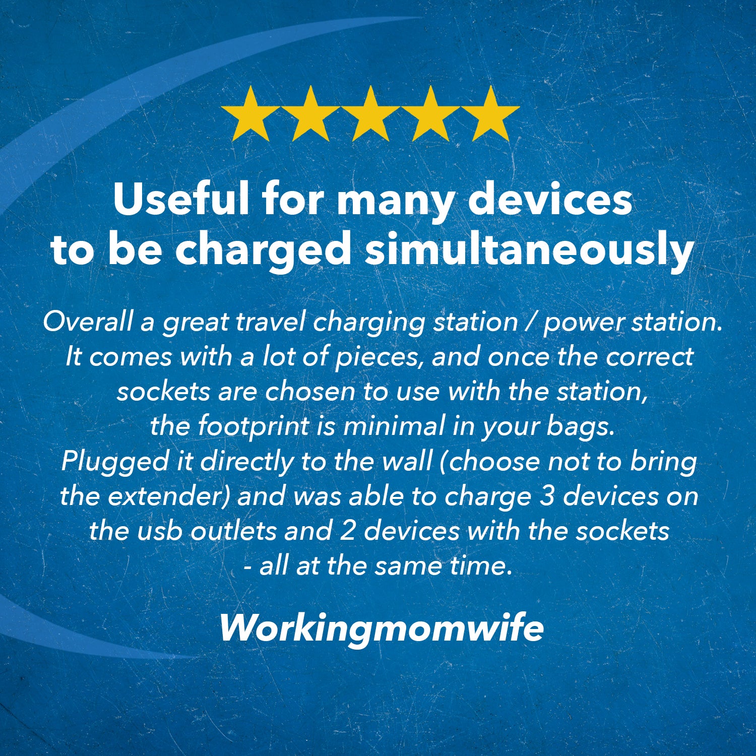 - Accepts 2 Grounded Plugs, 3 USB & 1 USB-C ports